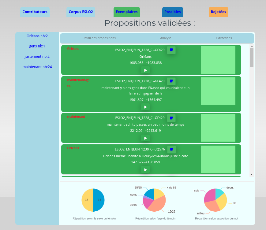 Mise en place de Pie Charts pour permettre l’évaluation d’une sélection pour un mot.